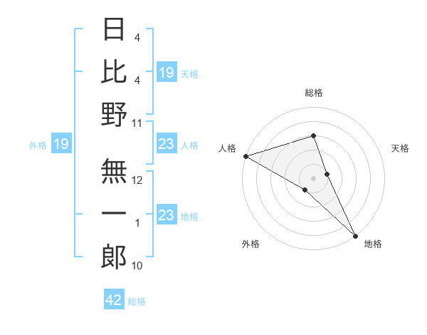 日比野 無一郞さんを姓名の画数から五運を鑑定