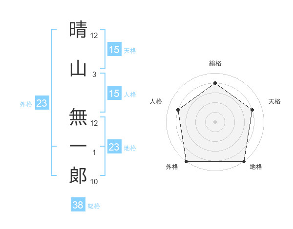 晴山 無一郞さんの地格は23画の5点!
