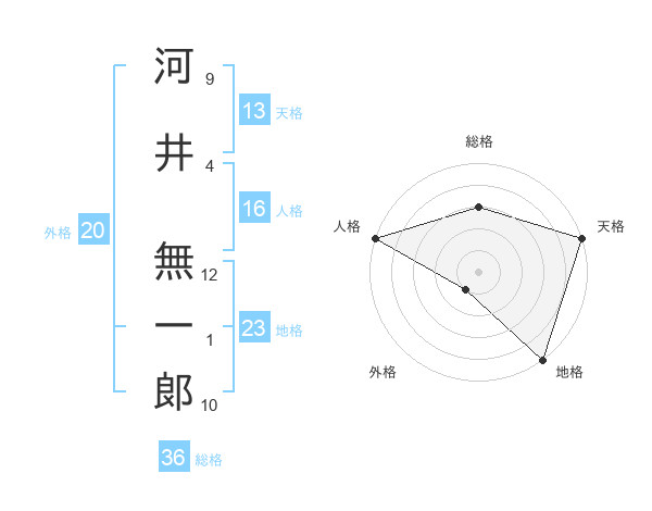 河井 無一郞さんを姓名の画数から五運を鑑定