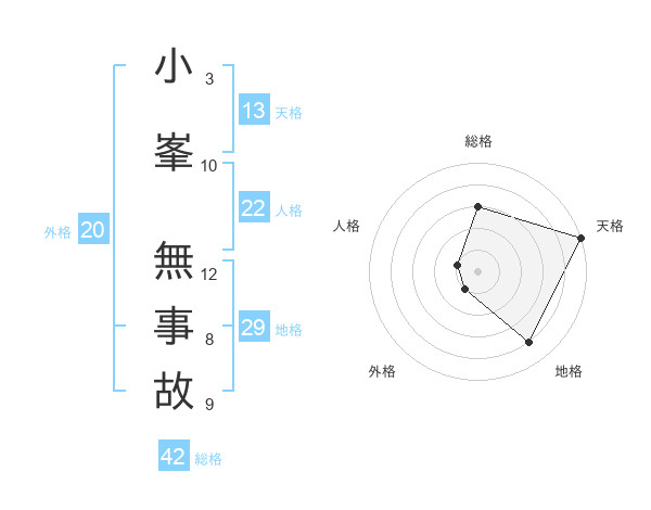 小峯 無事故さんを姓名の画数から五運を鑑定