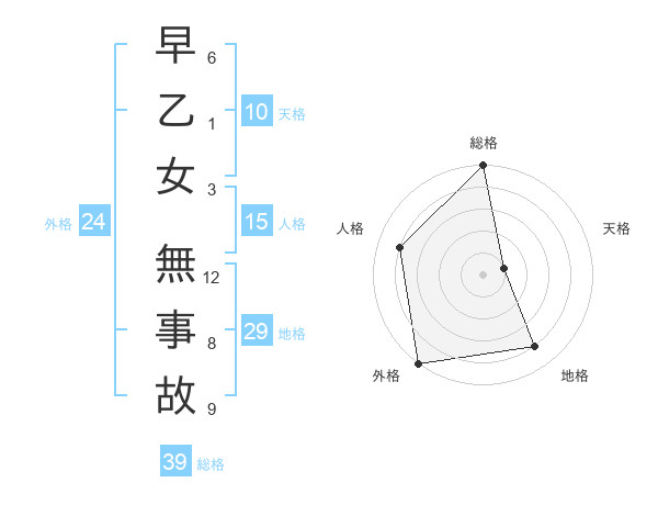 早乙女 無事故さんを姓名の画数から五運を鑑定