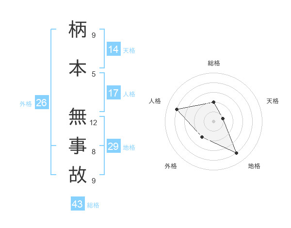 柄本 無事故さんを姓名の画数から五運を鑑定
