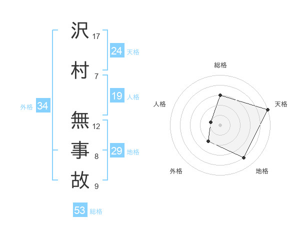 沢村 無事故さんの天格は24画の5点!