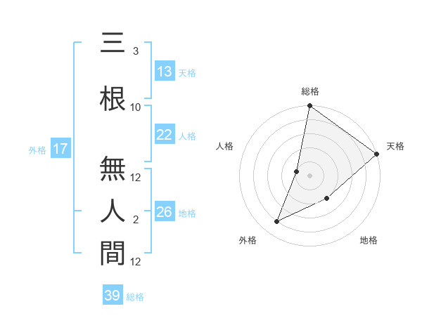 三根 無人間さんの外格は17画の4点!