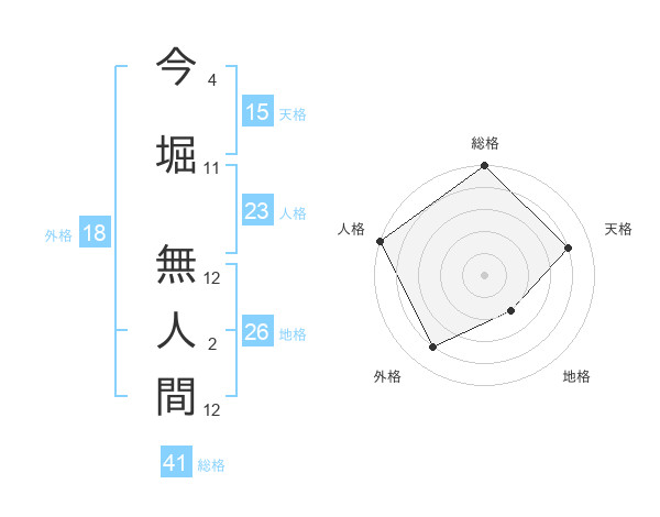 今堀 無人間さんを姓名の画数から五運を鑑定