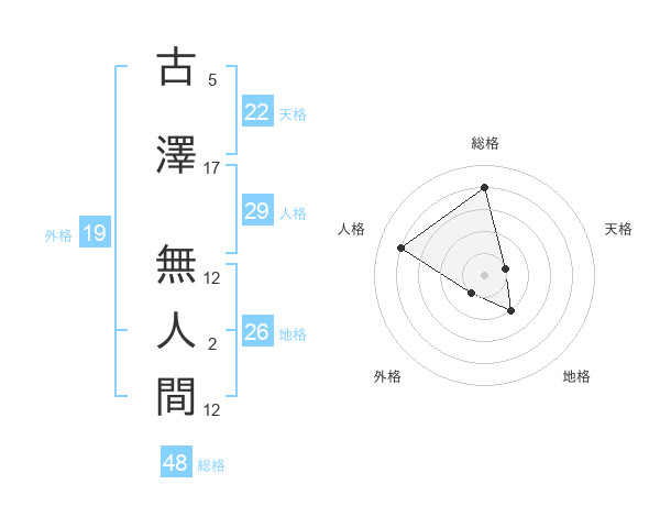 古澤 無人間さんの総格は48画の4点!