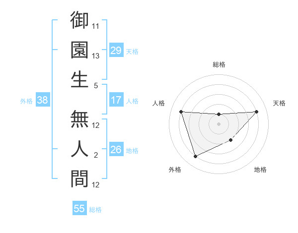 御園生 無人間さんを姓名の画数から五運を鑑定