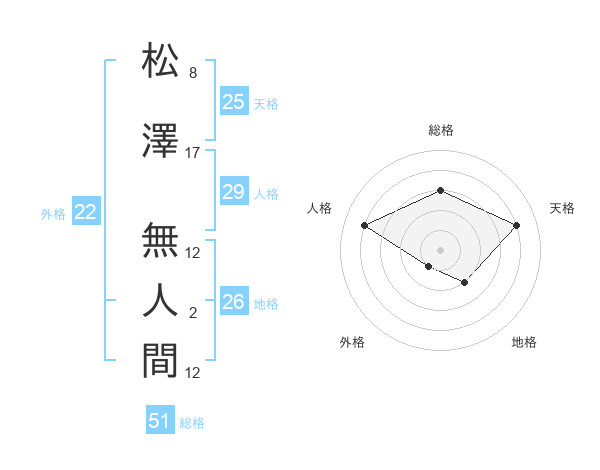 松澤 無人間さんを姓名の画数から五運を鑑定