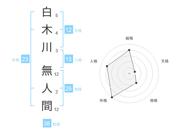白木川 無人間さんを姓名の画数から五運を鑑定