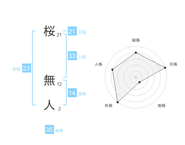 桜 無人さんの総格は35画の4点!