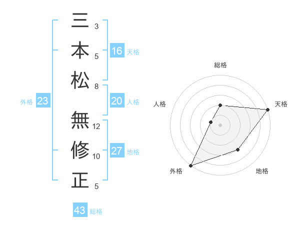 三本松 無修正さんの天格は16画の5点