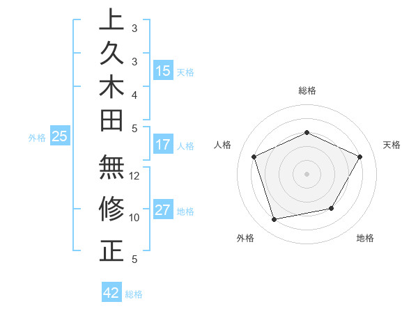 上久木田 無修正さんを姓名の画数から五運を鑑定