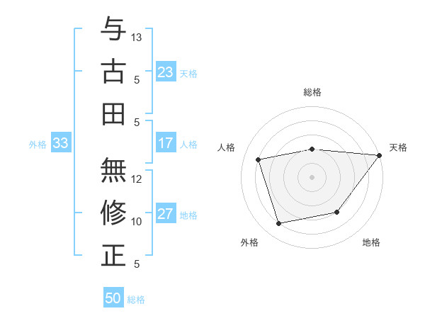 与古田 無修正さんを姓名の画数から五運を鑑定
