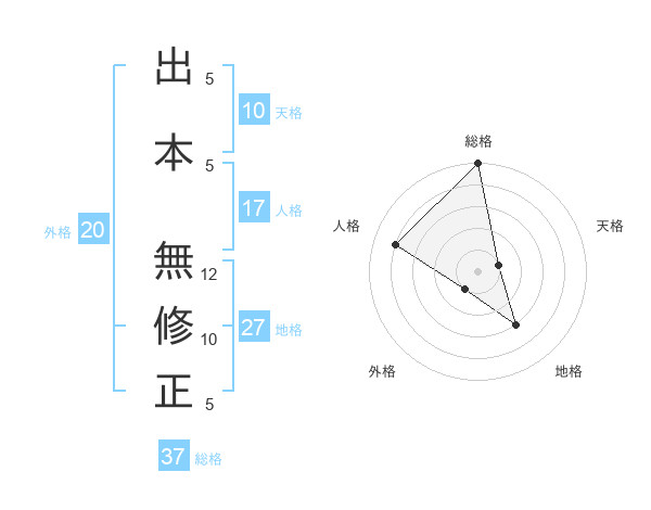 出本 無修正さんの総格は37画の5点!