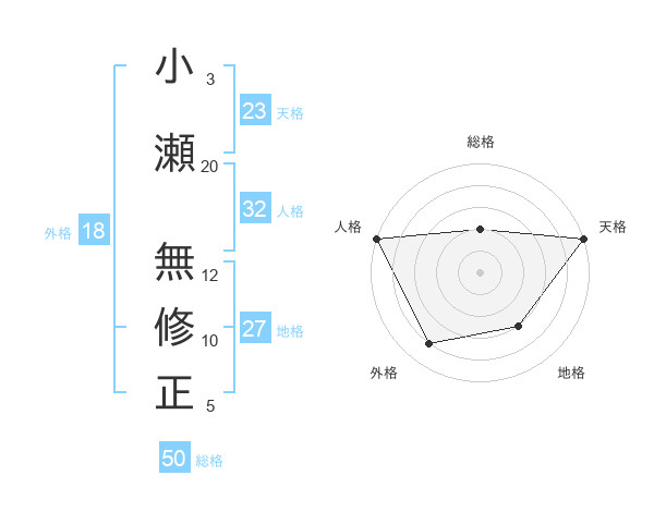 小瀬 無修正さんを姓名の画数から五運を鑑定