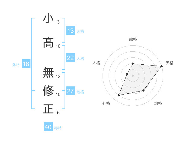小髙 無修正さんの天格は13画の5点!