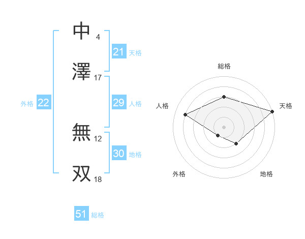中澤 無双さんの総格は51画の3点!