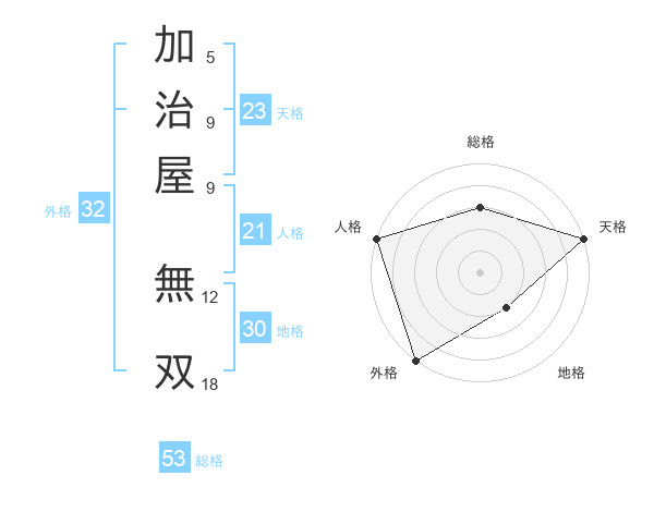 加治屋 無双さんを姓名の画数から五運を鑑定