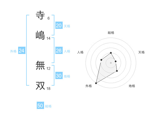 寺嶋 無双さんを姓名の画数から五運を鑑定