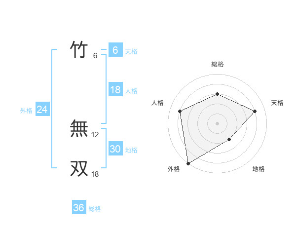 竹 無双さんの総格は36画の3点!