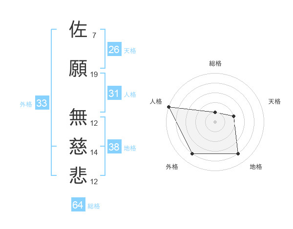 佐願 無慈悲さんを姓名の画数から五運を鑑定