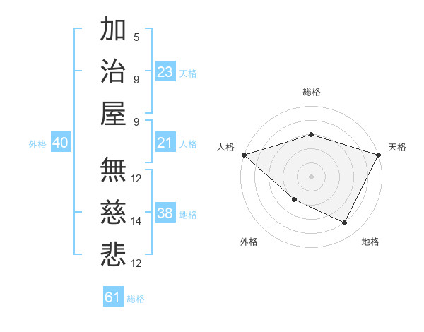 加治屋 無慈悲さんの天格は23画の5点!