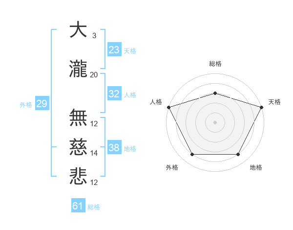 大瀧 無慈悲さんを姓名の画数から五運を鑑定