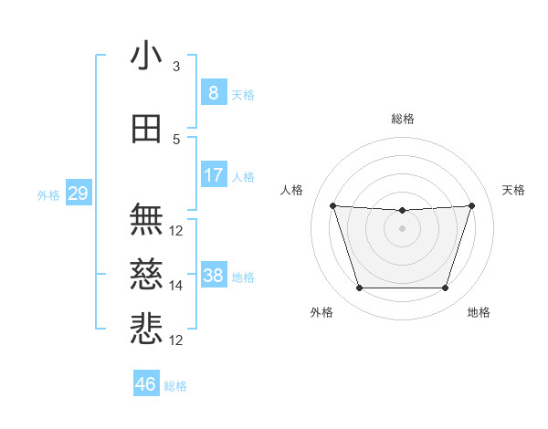 小田 無慈悲さんを姓名の画数から五運を鑑定