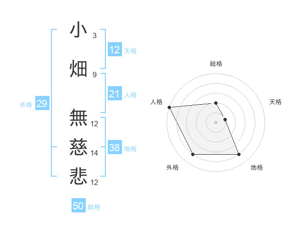 小畑 無慈悲さんを姓名の画数から五運を鑑定