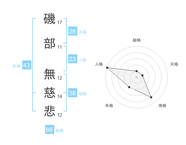 磯部 無慈悲さんを姓名の画数から五運を鑑定