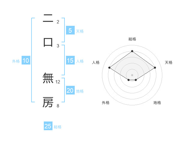 二口 無房さんの地格は20画の1点!