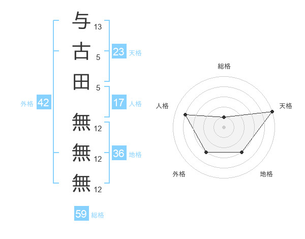 与古田 無無無さんを姓名の画数から五運を鑑定
