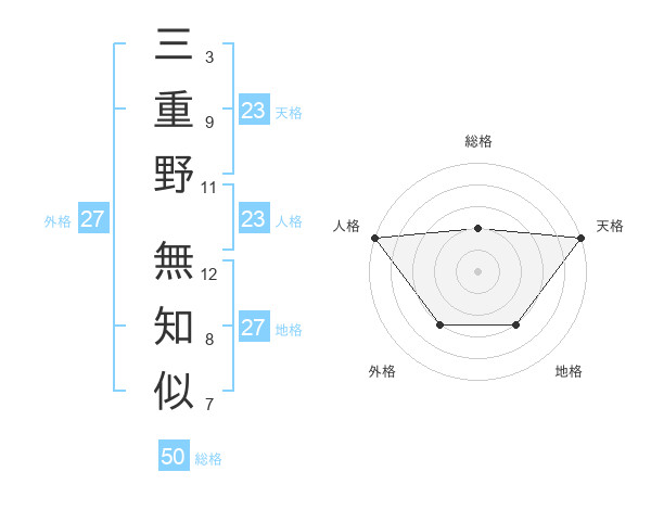 三重野 無知似さんを姓名の画数から五運を鑑定