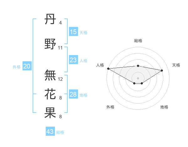 丹野 無花果さんを姓名の画数から五運を鑑定