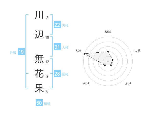 川辺 無花果さんの総格は50画の2点!