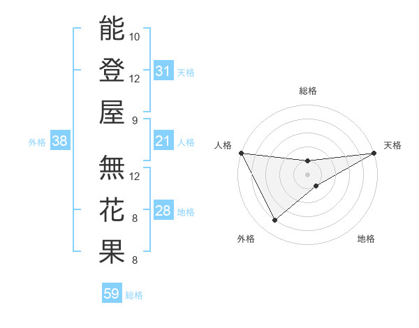 能登屋 無花果さんの総格は59画の1点!