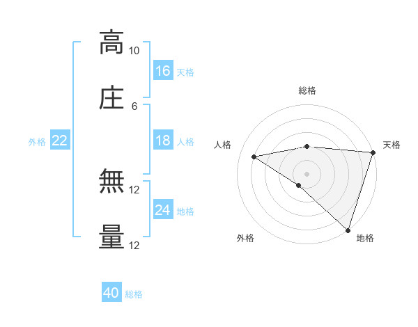高庄 無量さんの外格は22画の1点!
