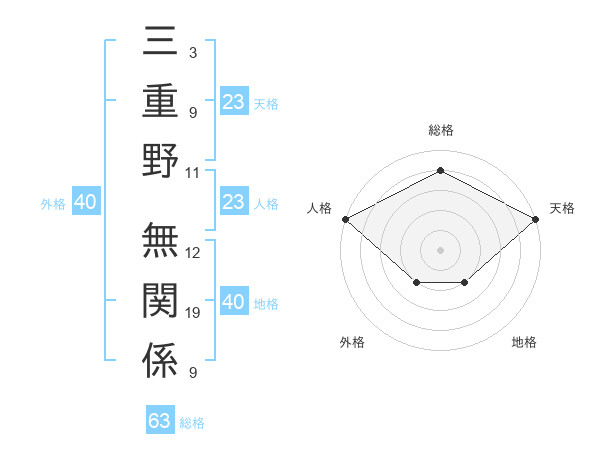三重野 無関係さんを姓名の画数から五運を鑑定