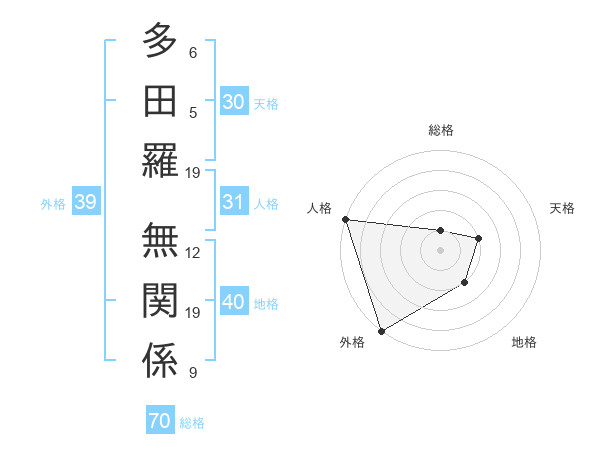 多田羅 無関係さんを姓名の画数から五運を鑑定