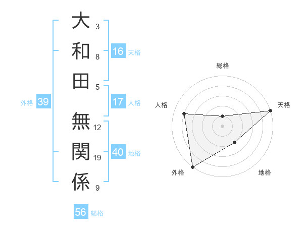 大和田 無関係さんを姓名の画数から五運を鑑定
