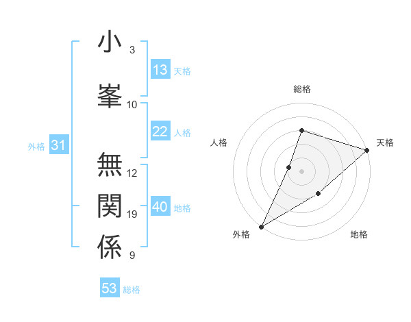 小峯 無関係さんを姓名の画数から五運を鑑定