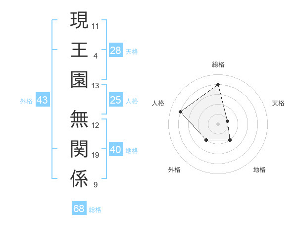 現王園 無関係さんの総格は68画の4点!