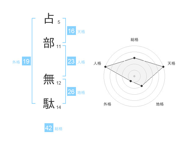 占部 無駄さんの総格は42画の3点!