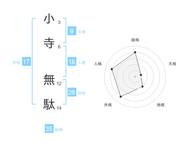 小寺 無駄さんを姓名の画数から五運を鑑定