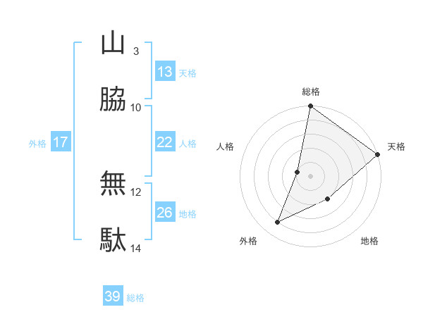 山脇 無駄さんを姓名の画数から五運を鑑定