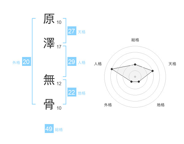 原澤 無骨さんを姓名の画数から五運を鑑定