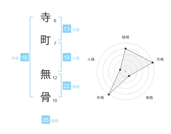 寺町 無骨さんの総格は35画の4点!