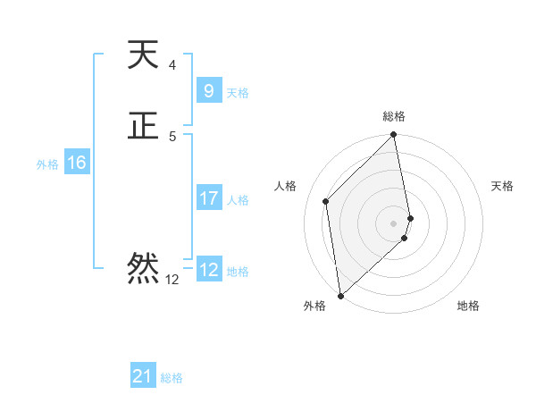 天正 然さんの総格は21画の5点!