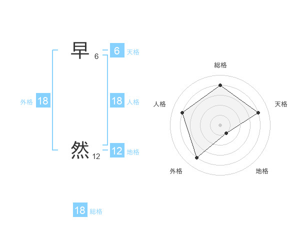 早 然さんの総格は18画の4点!
