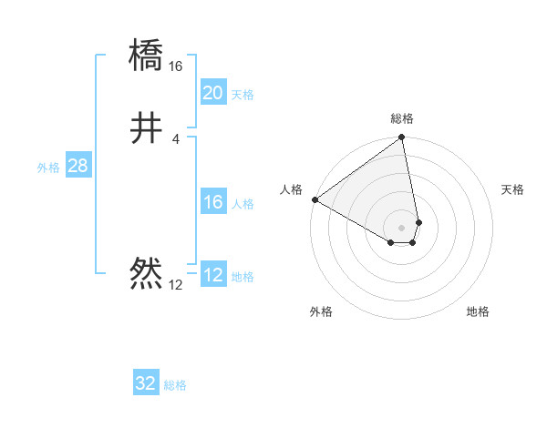 橋井 然さんの総格は32画の5点!